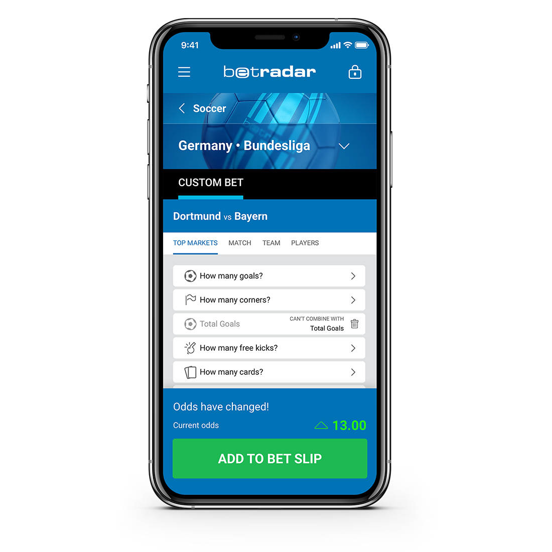 With both pre-match and live options, Custom Bet covers all soccer and basketball tournaments. Expect more than 90 markets for soccer (like Match Odds and First Goalscorer), and more than 15 for basketball (like Handicap and 1st Half Total).