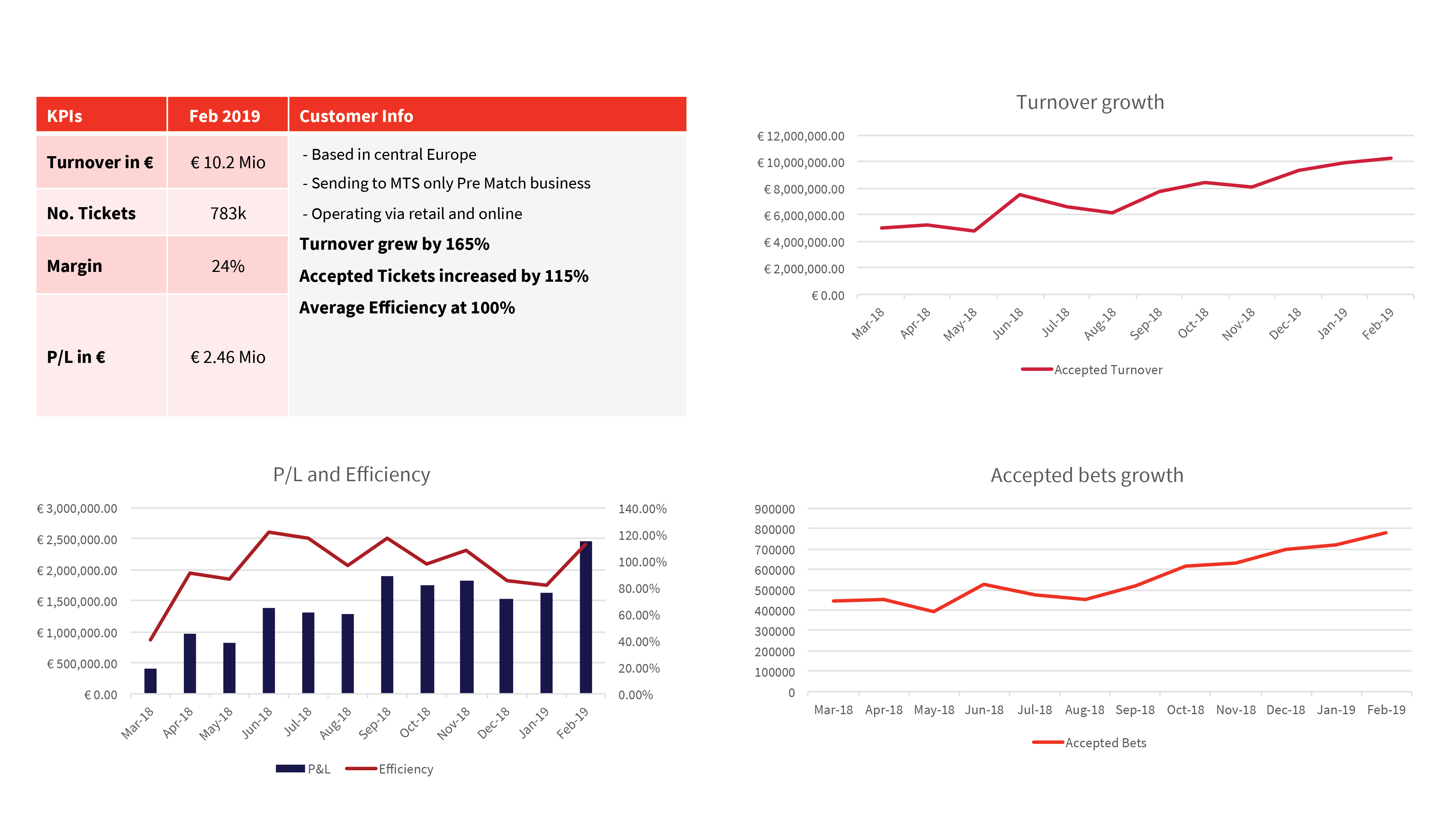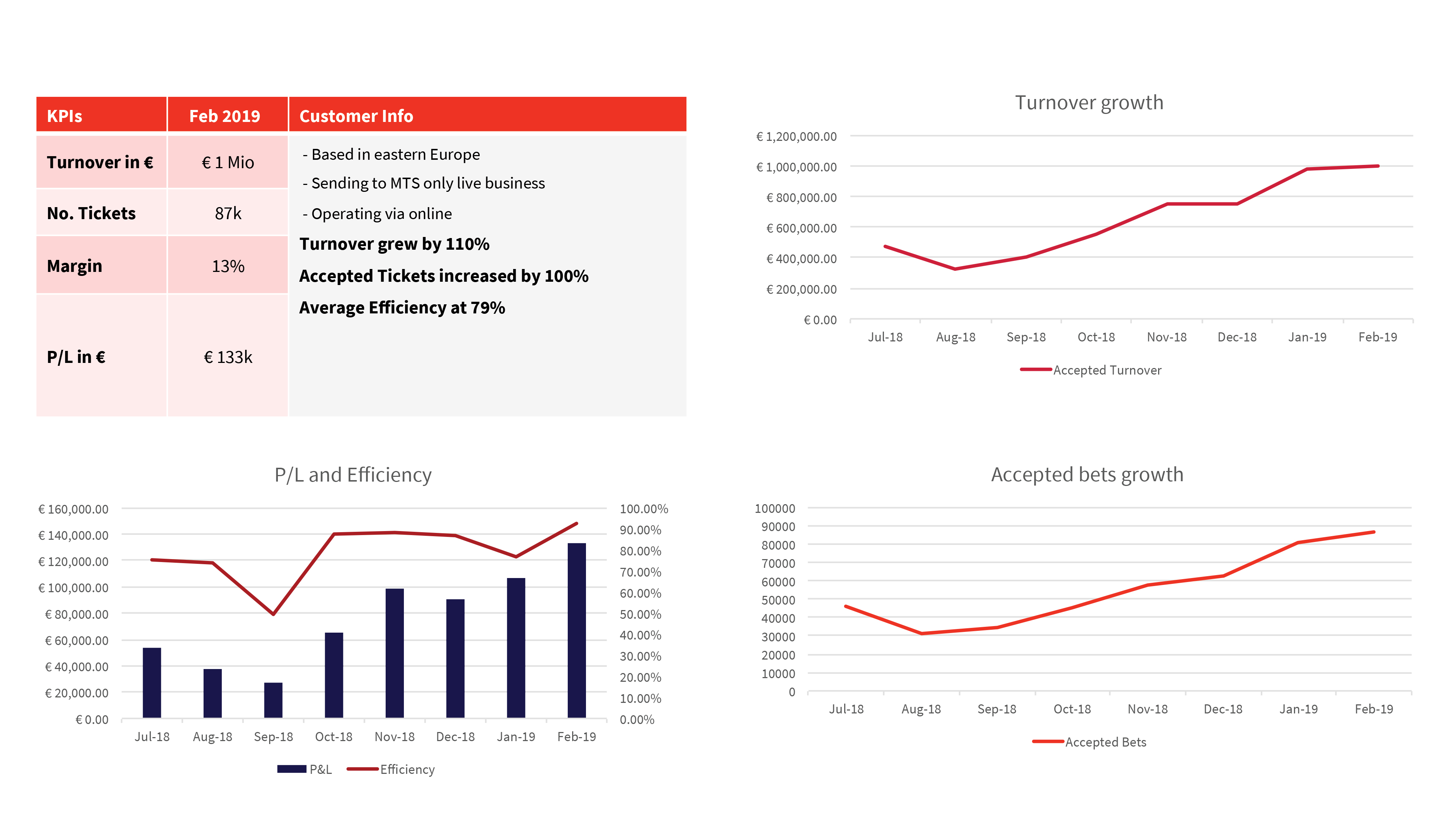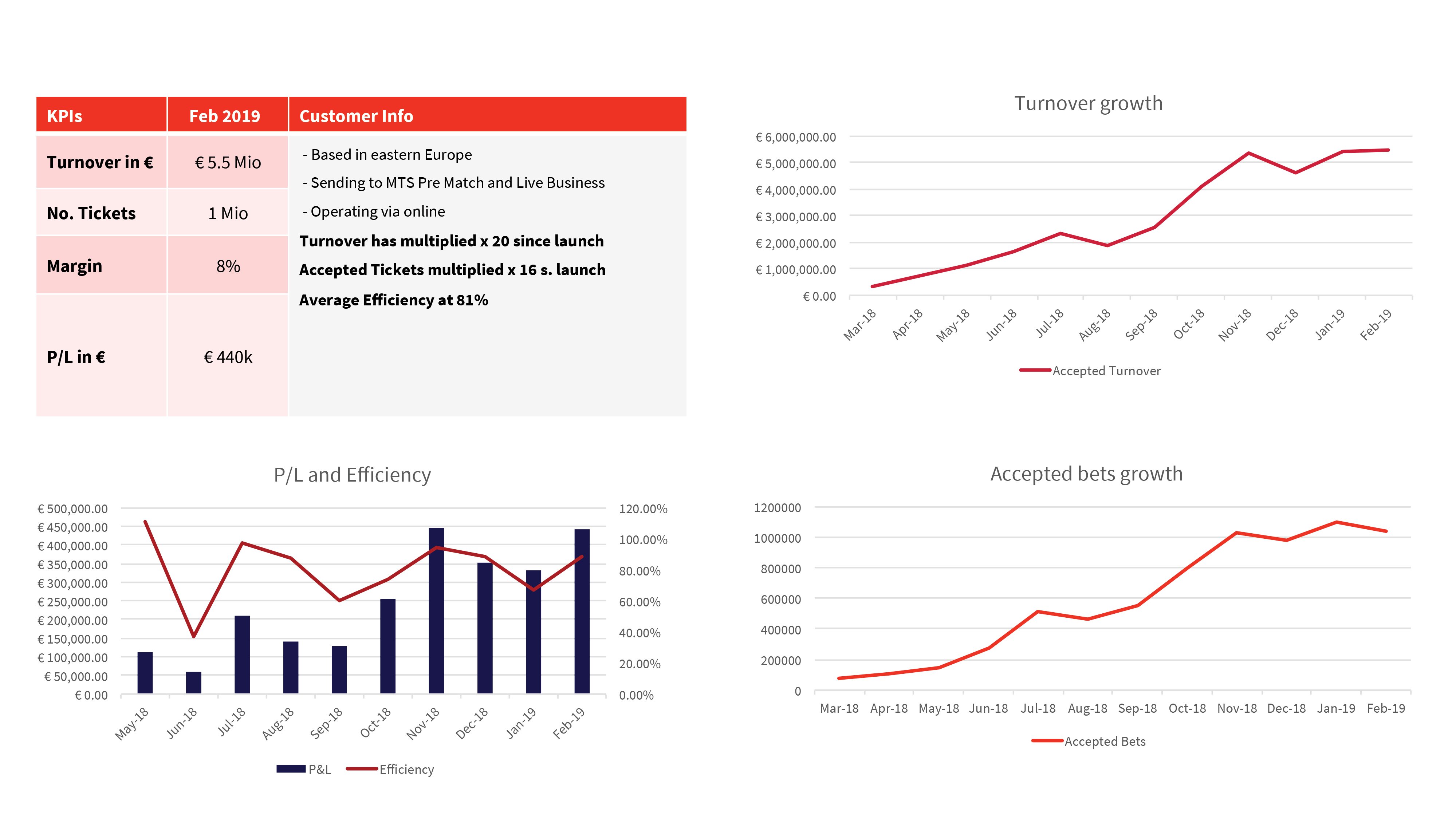 While established operators can use it to find the right tools to significantly improve their own trading and risk management, start-ups can build their entire business in the most flexible manner under the umbrella of MTS, benefiting from our market-leading sports data and betting entertainment services, while enjoying full administration of their trading by our experts.