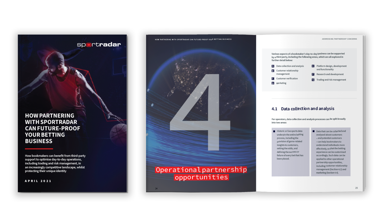 Our new thought paper “How partnering with Sportradar can future-proof your betting business” explores the opportunities, challenges and concerns relating to partnerships in the betting industry, with a special focus on the field of trading and risk management, and will also look to the future to see how relationships between suppliers and operators will continue to evolve.